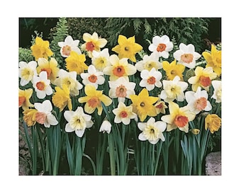 Plant at least 10cm deep in the autumn. Heres a delightful assortment of different Daffodils each with their own unique appeal. The orange-red cup is surrounded by yellow petals that fade to copper-yellow.